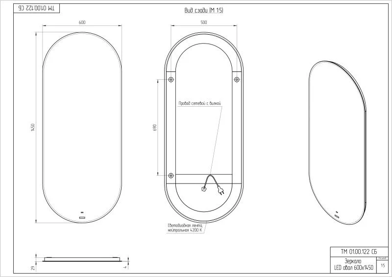зеркало с подсветкой, комплект креплений, инструкция, гарантийный талон