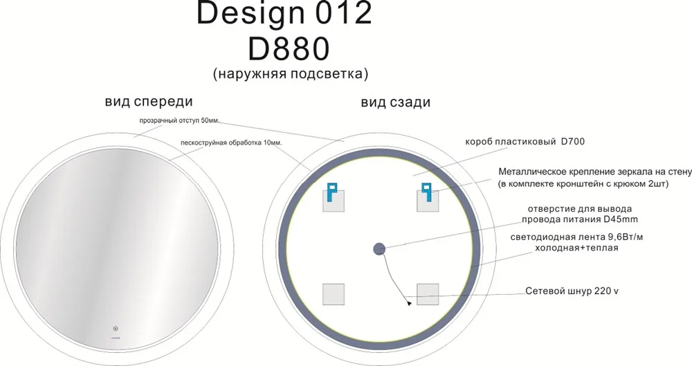 зеркало с подсветкой, комплект креплений, инструкция, гарантийный талон