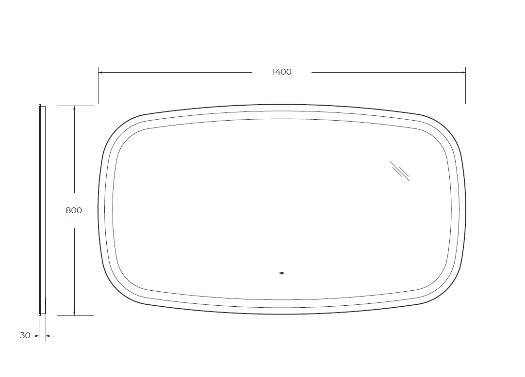 Зеркало 140x80, реверсное, с контурной и направленной подсветкой. Корпус изделия выполнен из светорассеивающего пластика, с бесконтактным сенсорным выключателем расположенным за зеркальным полотном. Диммер с возможностью регулировки яркости свечения. Укомплектован светодиодной лентой SMD 3528, IP 44, 12V, 6200 К, холодный свет. Крепеж для монтажа прилагается.