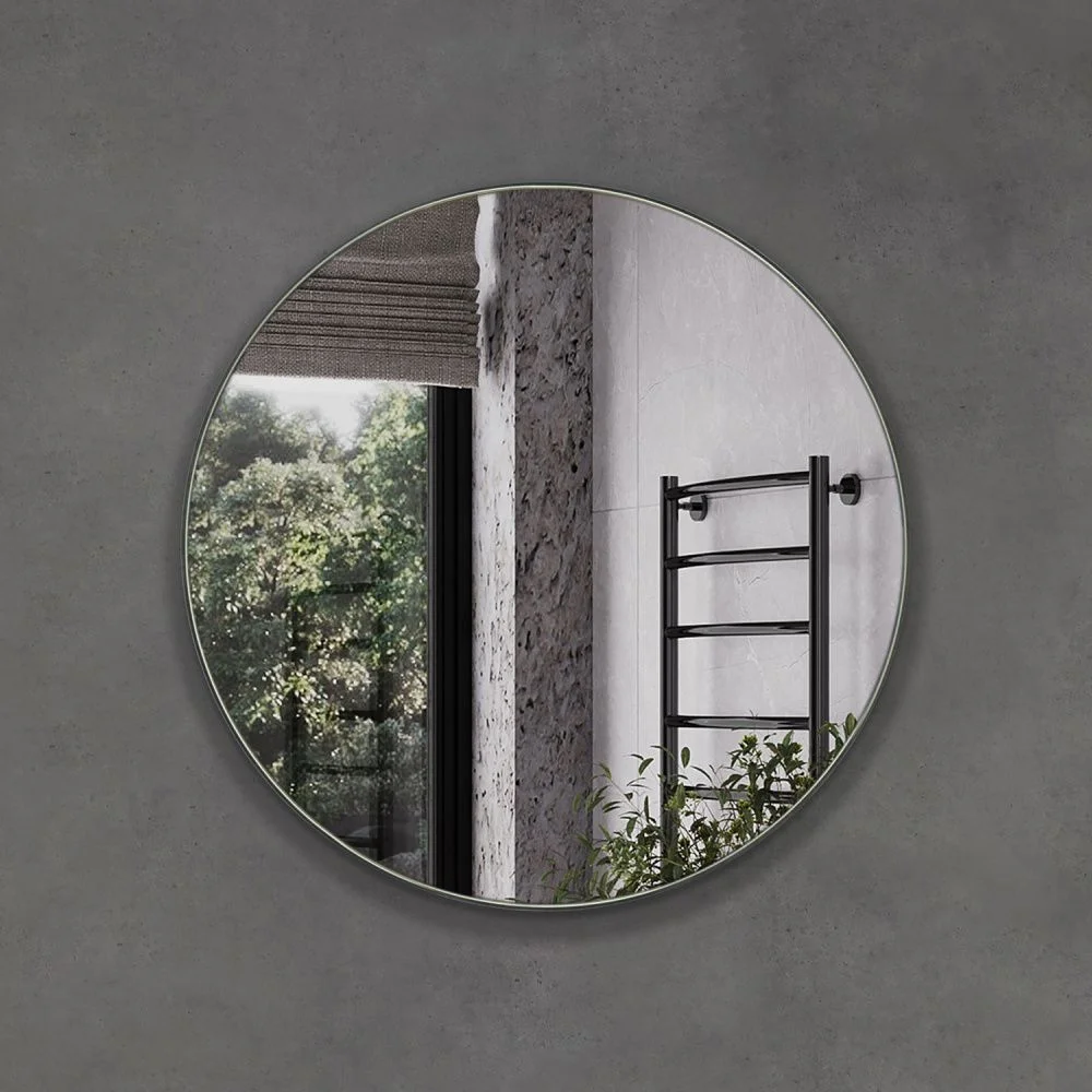 Универсальное настенное круглое зеркало диаметром 400 мм. Изготовлено из зеркального полотна толщиной 4 мм с амальгамой на основе серебра производства ведущего европейского производителя зеркал AGC. Зеркало поставляется в комплекте с настенным крепежом.
