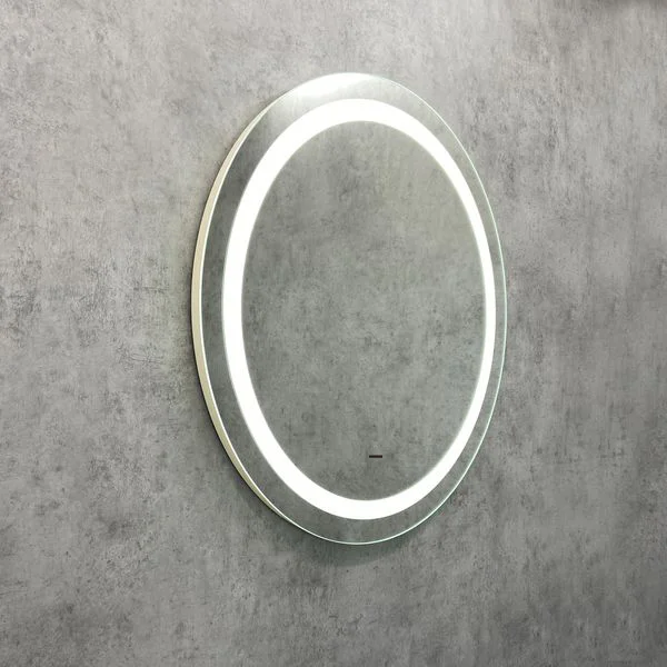 Зеркало оснащено встроенным светодиодным светильником размещенным по окружности и бесконтактным сенсором включения подсветки. Высококачественное зеркальное полотно с амальгамой на основе серебра.