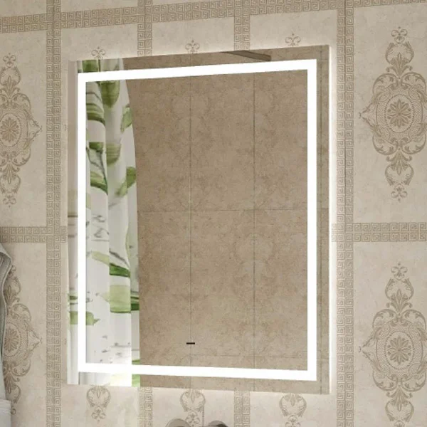 Зеркало оснащено встроенным светодиодным светильником размещенным по периметру и бесконтактным сенсором включения подсветки. Изготовлено из зеркального полотна толщиной 4 мм производства ведущего европейского производителя зеркал AGC.