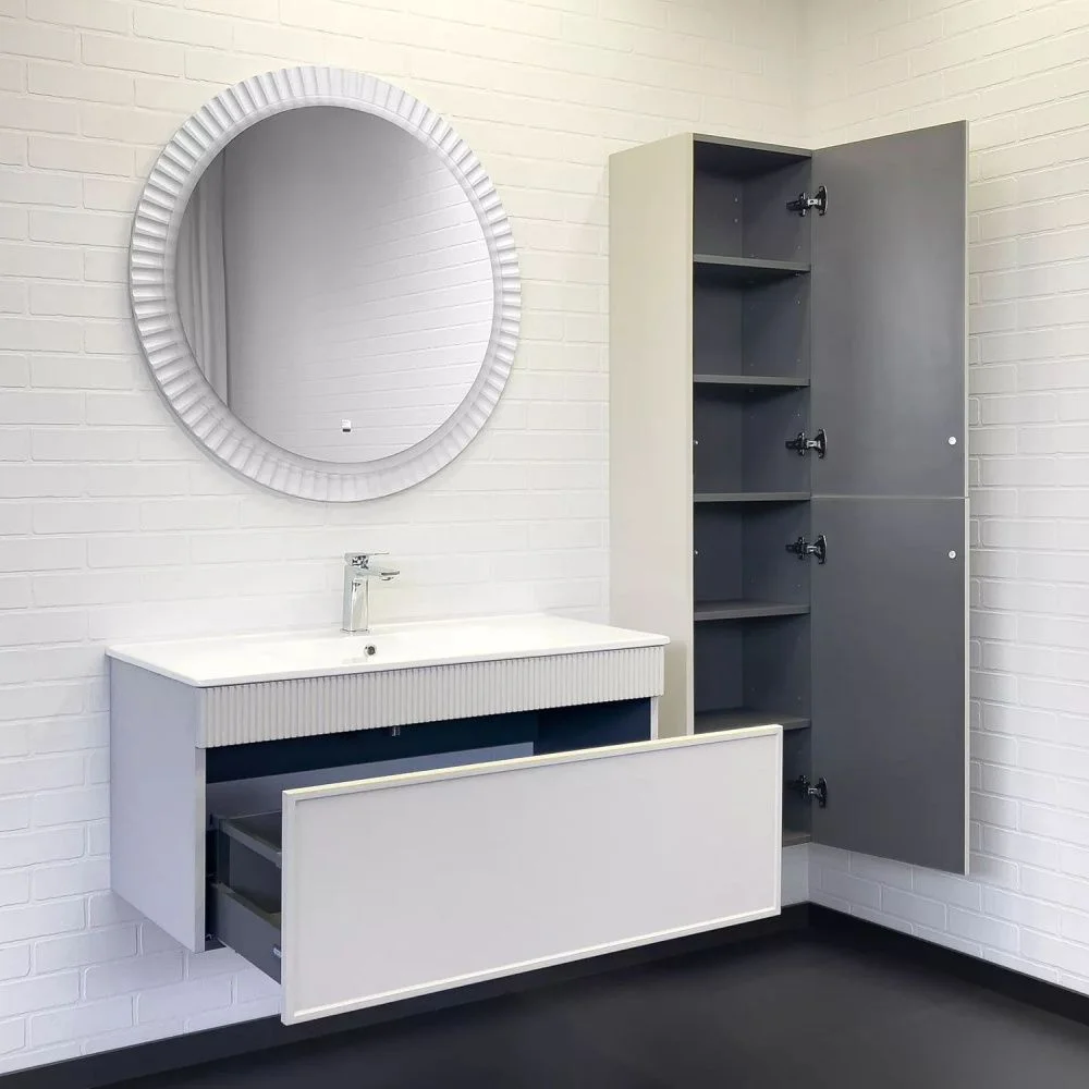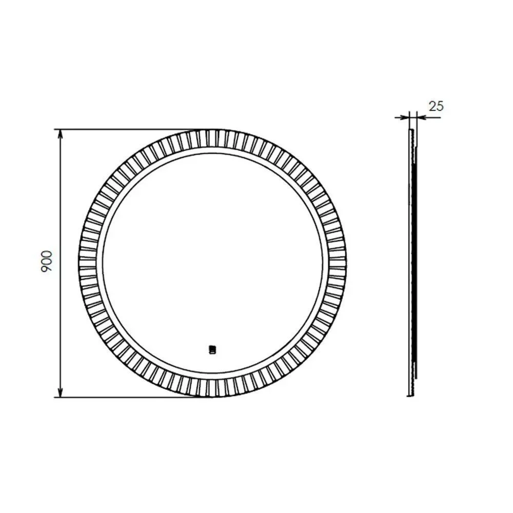 Высококачественное зеркальное полотно с амальгамой на основе серебра. Зеркало оборудовано ореольной и фронтальной Led подсветкой с бесконтактным включателем со встроенной функцией регулировки яркости. Температура подсветки: 6000-6500К холодная. Зеркало оснащено функцией антизапотевания. Основа зеркала из МДФ фрезерована радиальным узором в виде лучей и покрыта белой матовой эмалью.