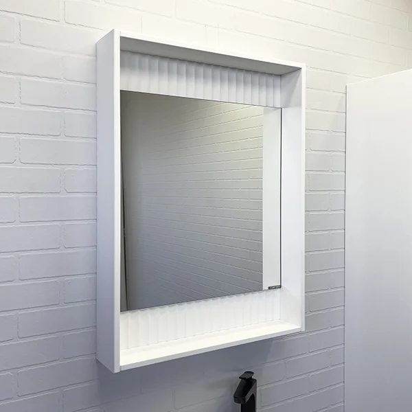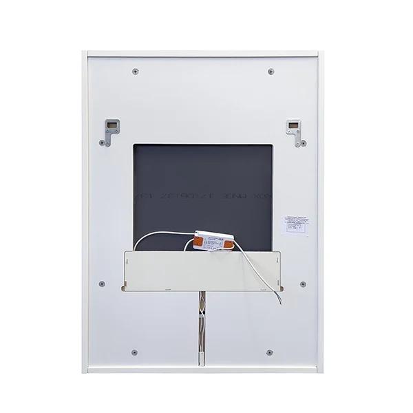 Зеркальное высококачественное полотно с амальгамой на основе серебра. Зеркало-короб оборудовано светодиодной контурной подсветкой с бесконтактным включателем.