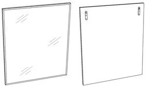 Зеркало с фацетом 10 мм, крепится к стене на 2 прямых подвеса сзади.