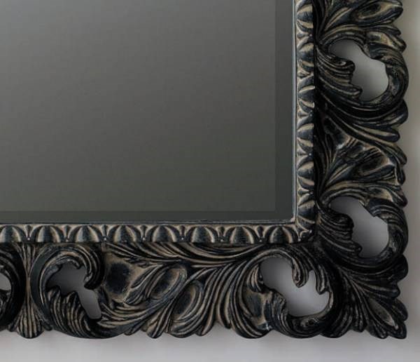 Прямоугольное зеркало в красивой узорчатой раме выполнено из материалов высокого качества. Темный оттенок эстетично сочетается с сантехникой разного дизайна и подчеркивает индивидуальный стиль интерьера. Размер зеркала 99х120 см. Глянцевая поверхность стекла не портится от попадания влаги.