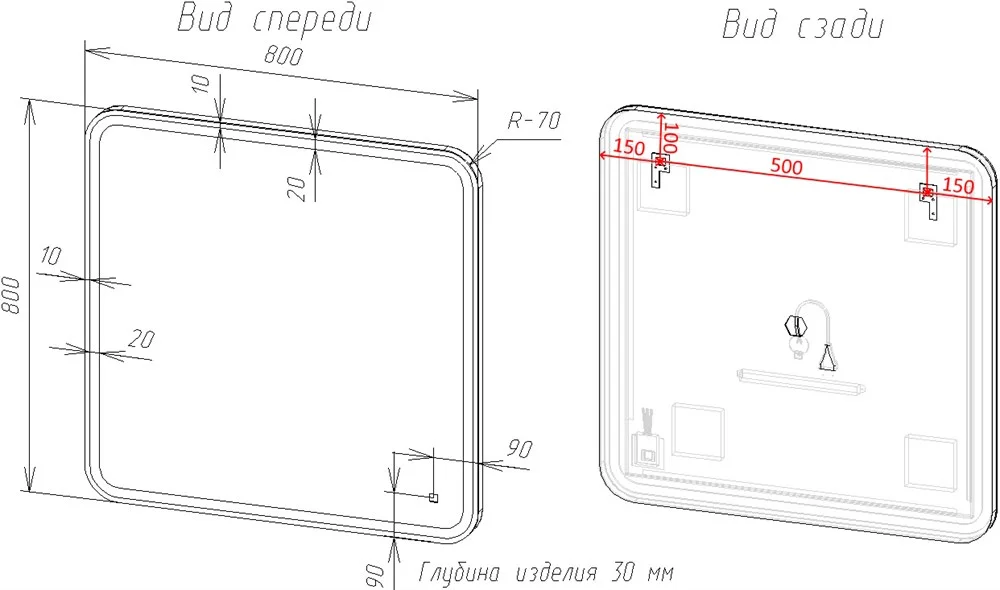 Зеркало DIWO Коломна 80 с подсветкой светодиодной, сенсорный выключатель, российское, настенное 4825
