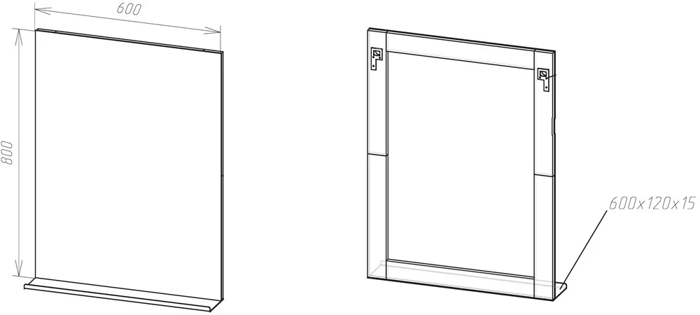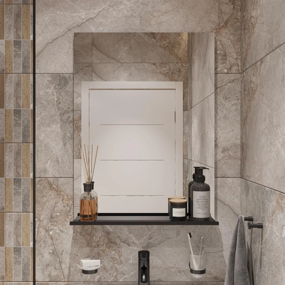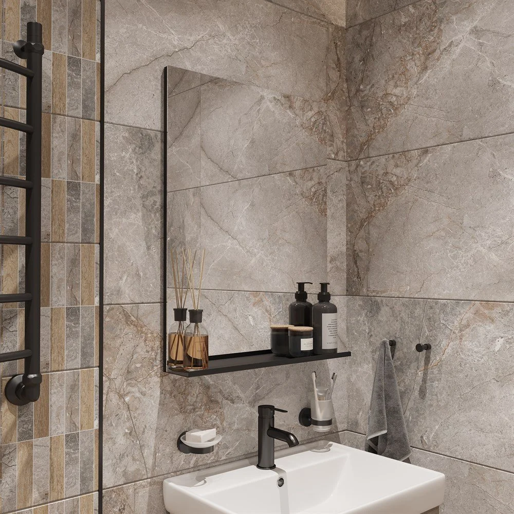 Зеркало DIWO Смоленск 60 с полкой, черное, в стиле лофт, прямоугольное 482824