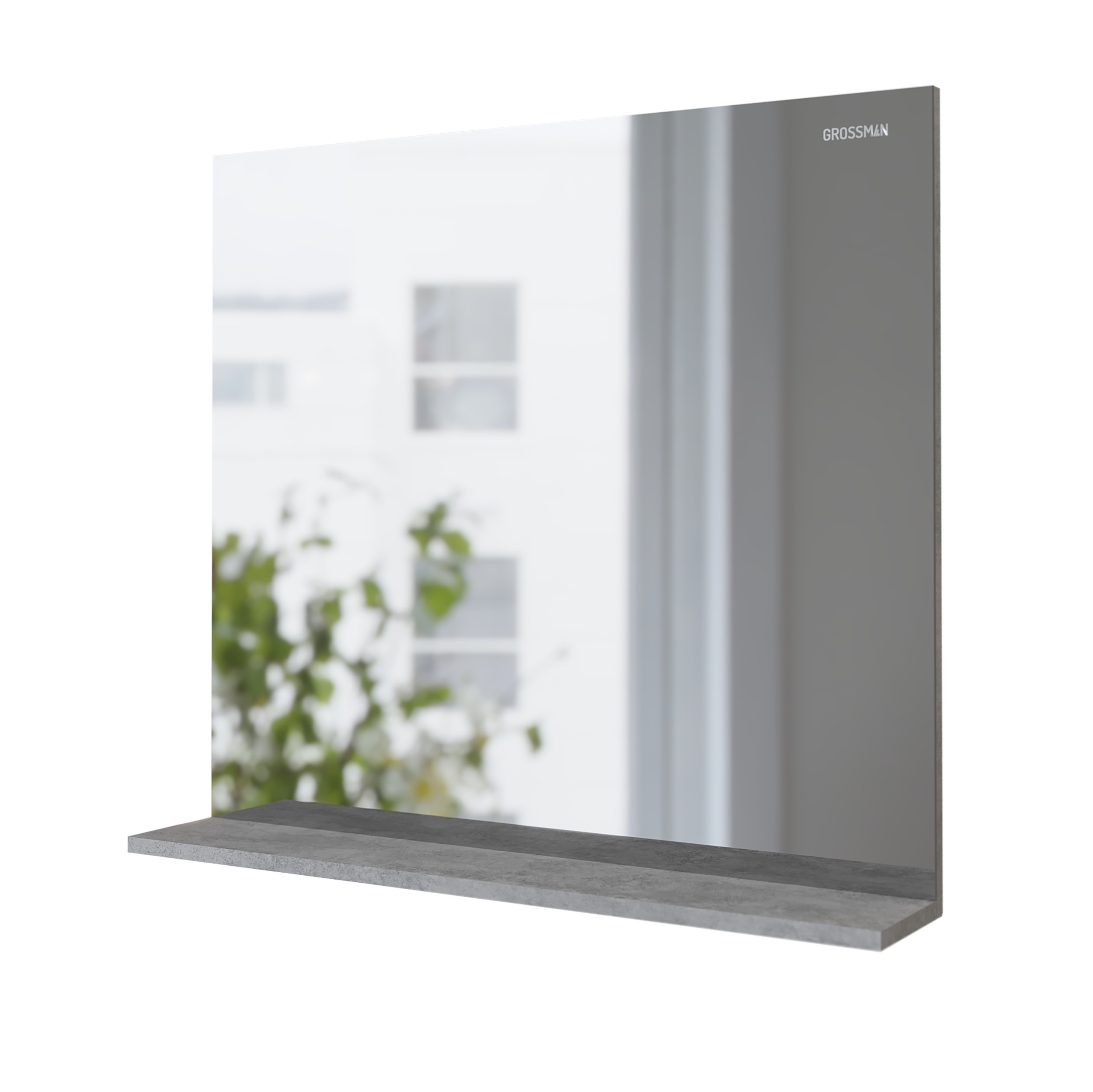 Зеркало Эдванс 80 см с полкой отражает современные тенденции в дизайне мебели для ванных комнат: и создано для тех, кто ценит современный лаконичный дизайн, холодный эффект светлого цемента.
