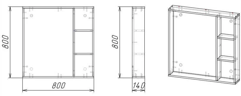 Зеркальный шкаф изготовлен из влагостойкого ЛДСП, устойчивой к механическим воздействиям, перепадам температур и высокой влажности.