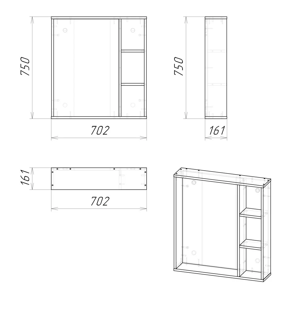 Зеркальный шкаф изготовлен из ЛДСП, устойчивой к механическим воздействиям, перепадам температур и высокой влажности.