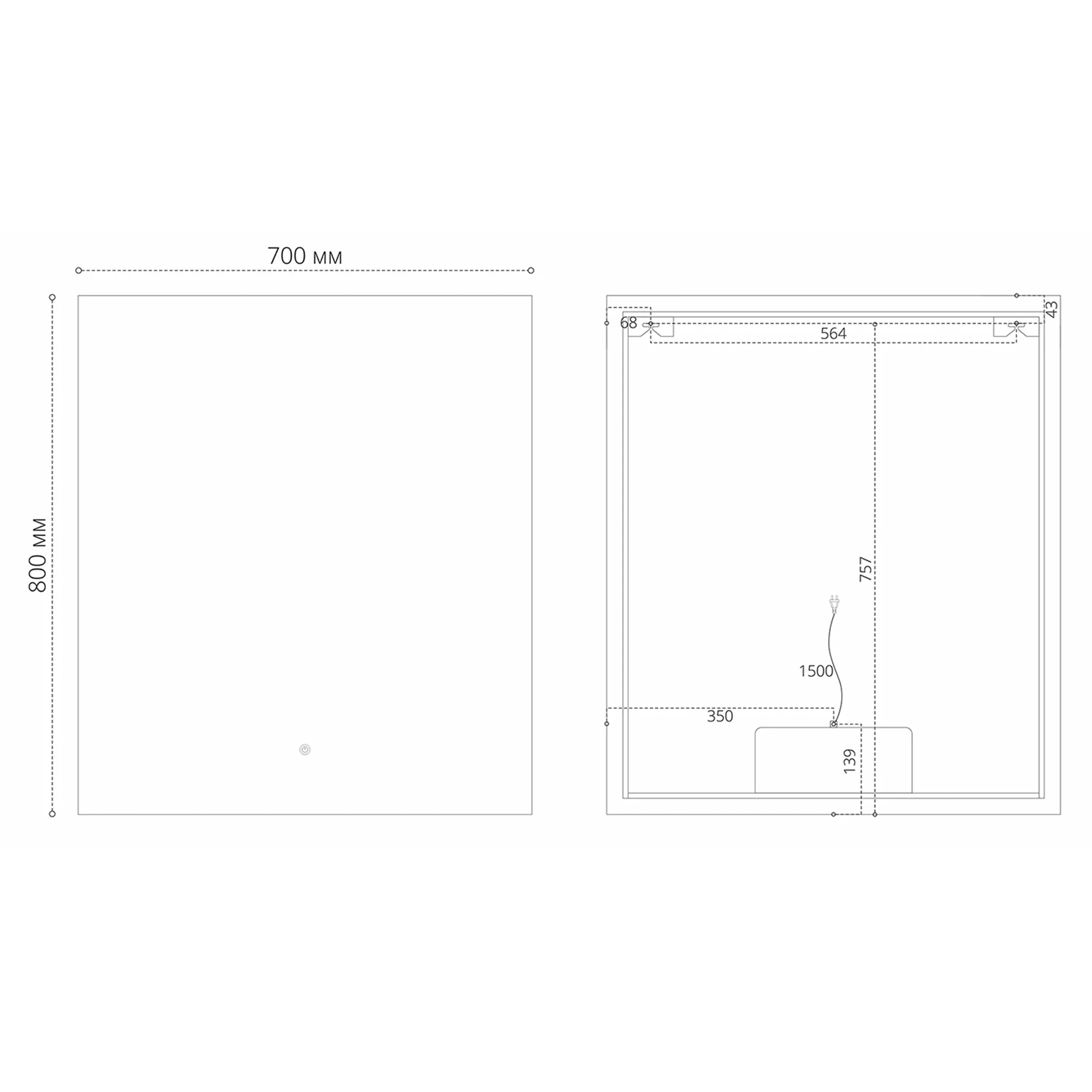 Зеркало GROSSMAN PRAGMA-норма BLACK (700x800x45) LED с сенсорным выключателем и подогревом 1870802