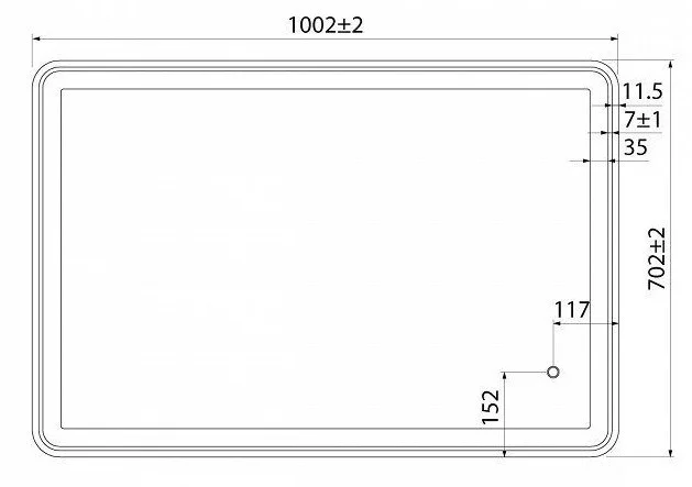 Зеркало для ванной с LED-подсветкой, 4мм. Размеры: 35х1000х700 мм (ДхШхВ). Корпус сталь, цвет черный матовый.