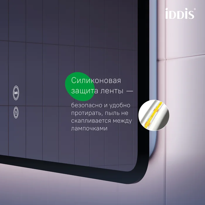 • Надежная силиконовая оболочка защищает блок управления и диодную ленту интерьерной подсветки от влаги и пара обеспечивает долгий срок службы. Ее легко мыть от пыли и налета.