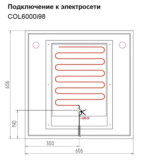 Зеркало для ванной. Размеры: 38х606х606 мм (ДхШхВ). МДФ 40 мм, термообогрев. Упаковка: картон, пленка, пенопластовые уголки.