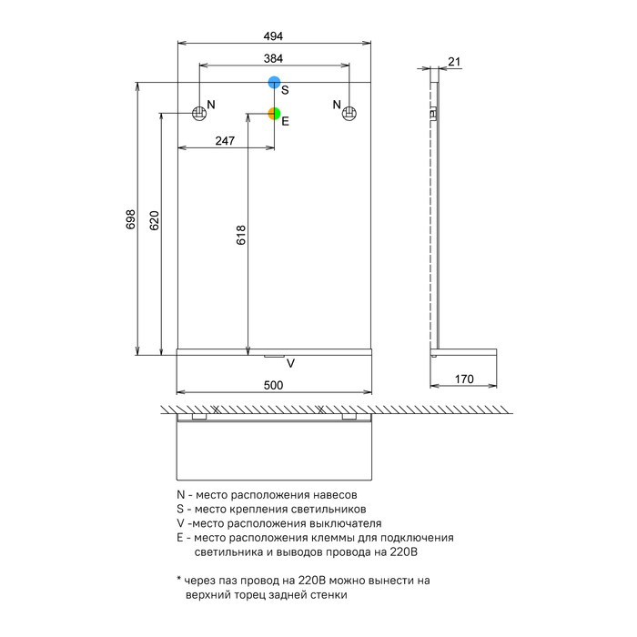• Розетка и выключатель идут в комплекте. Зеркало поставляется в собранном виде в картонной упаковке.