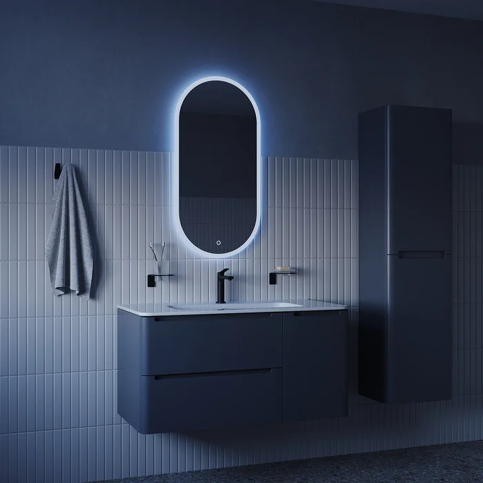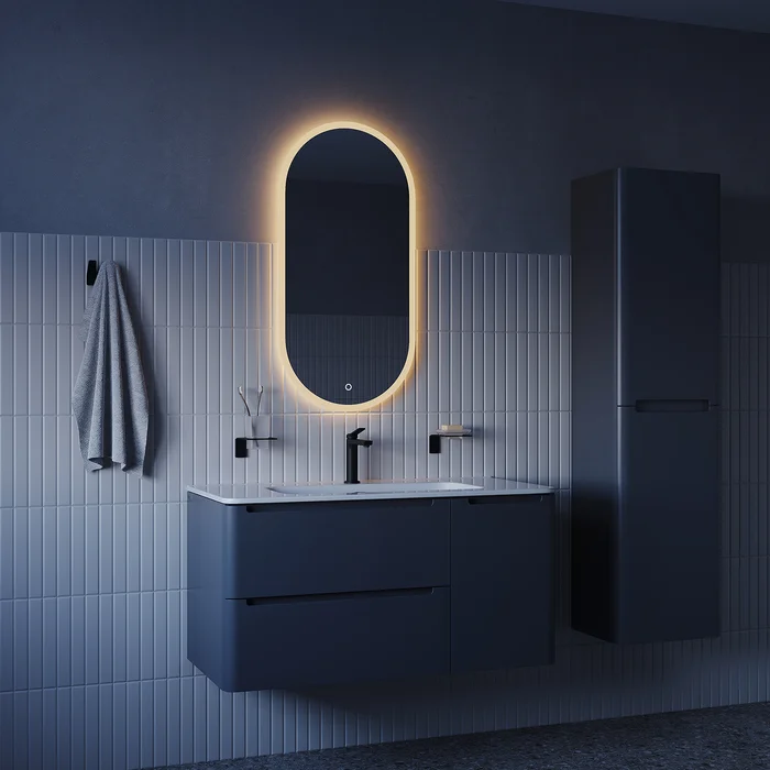 Стильное капсульное зеркало Uniq – продуманное универсальное решение для современной ванной благодаря возможности повесить его вертикально или горизонтально, а также трем цветам подсветки в одном зеркале – можно выбрать оптимальный по температуре: теплый (3 000 К), нейтральный (4 500 К) или холодный (6 000 К).