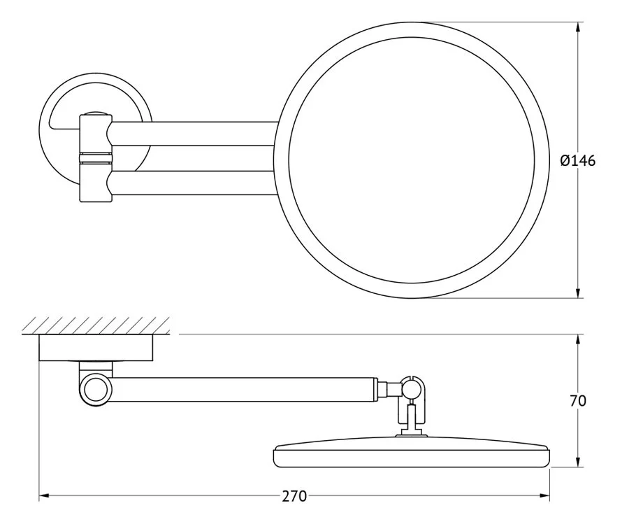 Интересное дополнение интерьера ванной комнаты – косметическое зеркало. Оно предназначено для увеличения отражения лица с целью проведения косметических процедур. Для мужчин создает удобство при бритье. Конструкция зеркала создана таким образом, что с помощью шарнира и салазок его можно поворачивать, наклонять и выдвигать для максимально комфортного использования. При отсутствии необходимости использования занимает минимум пространства в прижатом к стене состоянии. Корпус зеркала пластиковый, остальная конструкция изготовлена из латуни, покрытой хромом. Внутренний диаметр зеркала 131 мм.