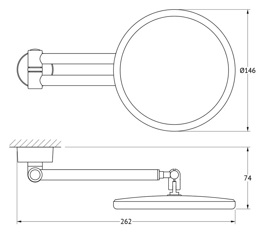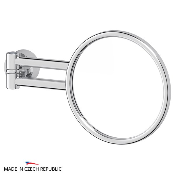 Интересное дополнение интерьера ванной комнаты – косметическое зеркало. Оно предназначено для увеличения отражения лица с целью проведения косметических процедур. Для мужчин создает удобство при бритье. Конструкция зеркала создана таким образом, что с помощью шарнира и салазок его можно поворачивать, наклонять и выдвигать для максимально комфортного использования. При отсутствии необходимости использования занимает минимум пространства в прижатом к стене состоянии. Корпус зеркала пластиковый, остальная конструкция изготовлена из латуни, покрытой хромом. Внутренний диаметр зеркала 131 мм.