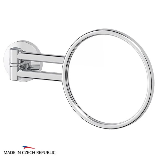 Интересное дополнение интерьера ванной комнаты – косметическое зеркало. Оно предназначено для увеличения отражения лица с целью проведения косметических процедур. Для мужчин создает удобство при бритье. Конструкция зеркала создана таким образом, что с помощью шарнира и салазок его можно поворачивать, наклонять и выдвигать для максимально комфортного использования. При отсутствии необходимости использования занимает минимум пространства в прижатом к стене состоянии. Корпус зеркала пластиковый, остальная конструкция изготовлена из латуни, покрытой хромом. Внутренний диаметр зеркала 131 мм.