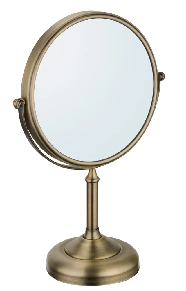 Настольное двухсторонне косметическое зеркало (одна сторона зеркала с увеличением, другая без). Ретро дизайн, отделка под состаренную бронзу, материал - латунь.