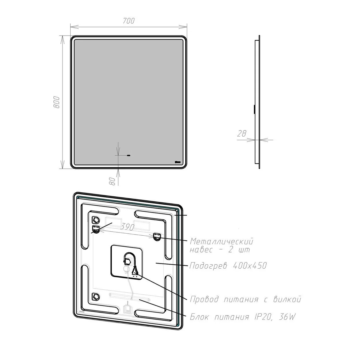 регулировка яркости света, сенсорный выключатель, подогрев, подвесы