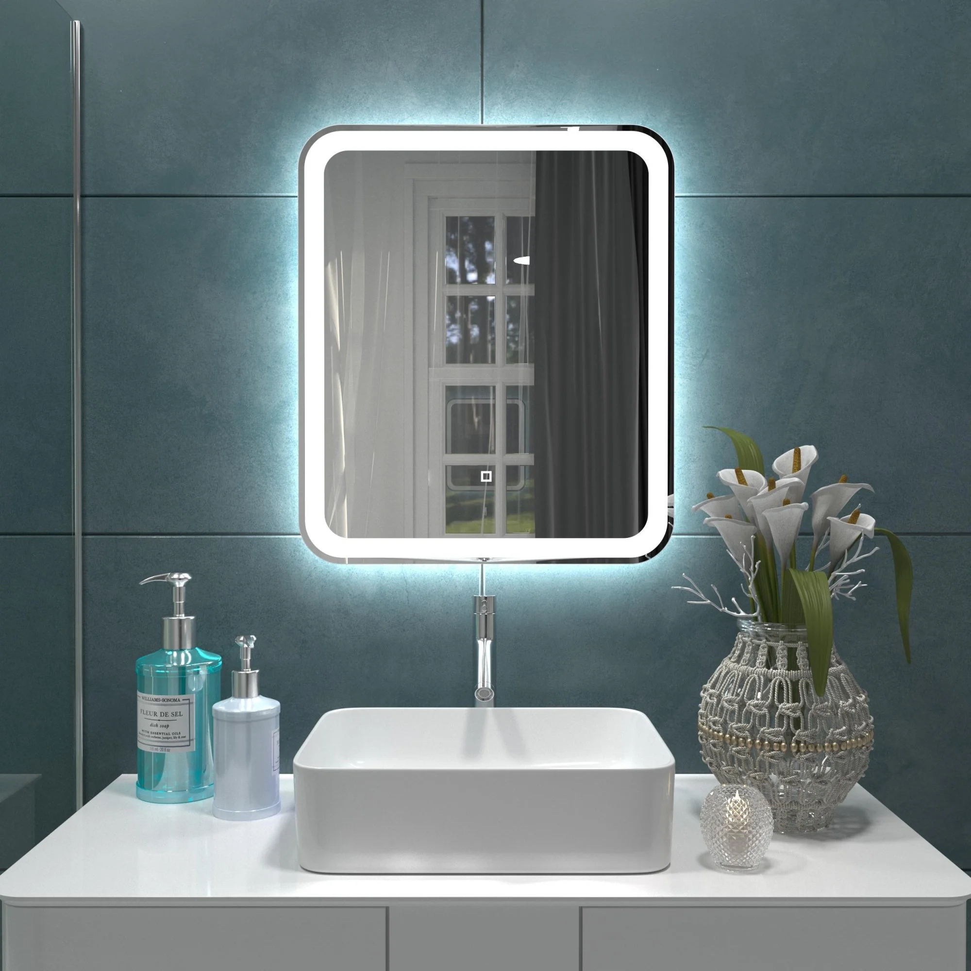 Яркость LED-подсветки регулируется при помощи встроенного диммера и сенсорной кнопки на поверхности зеркала.