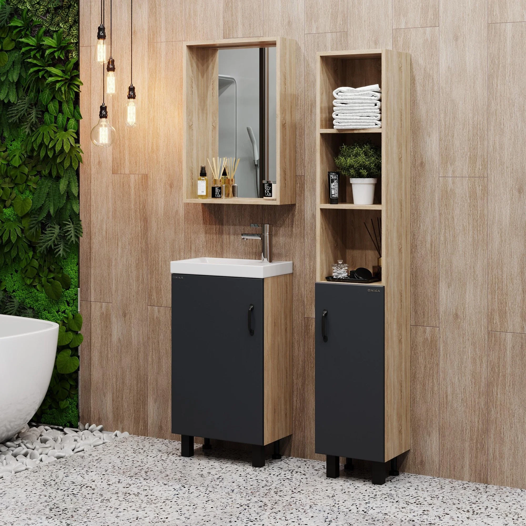 Зеркало в ванную комнату Onika ТИМБЕР 48 отражает современные тенденции в дизайне мебели для ванных комнат: минимализм с простыми и понятными формами, цвета дуба с роскошной текстурой, отсутствие лишних деталей.