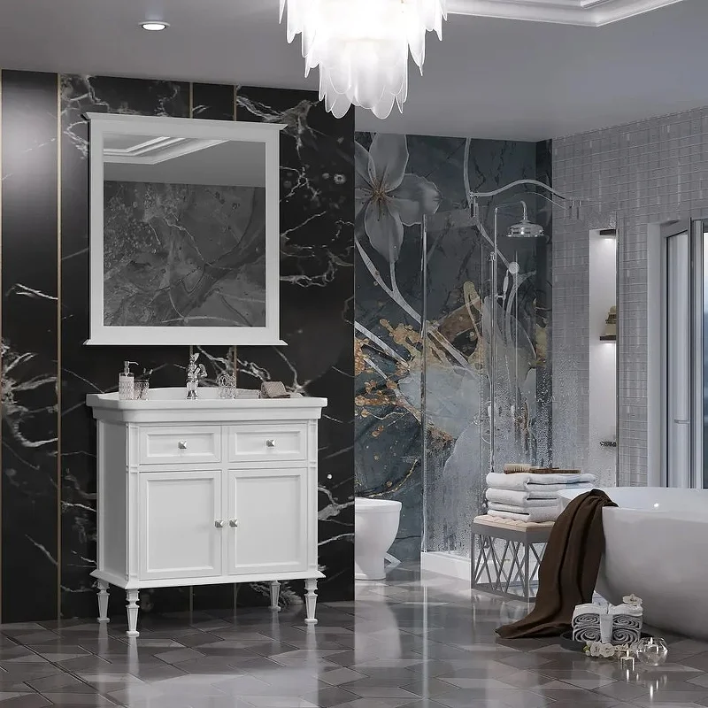 Коллекцию КАНТАРА характеризует филигранная фрезеровка ножек в итальянском стиле и шикарная глубокая керамическая раковина — столешница в размерах 85 или 105 см.