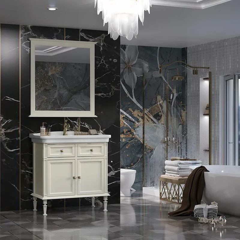 Коллекцию КАНТАРА характеризует филигранная фрезеровка ножек в итальянском стиле и шикарная глубокая керамическая раковина — столешница в размерах 85 или 105 см.