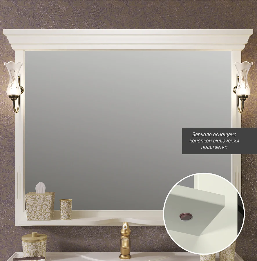Зеркало Opadiris Риспекто 120, слоновая кость, с выключателем 00-00007050