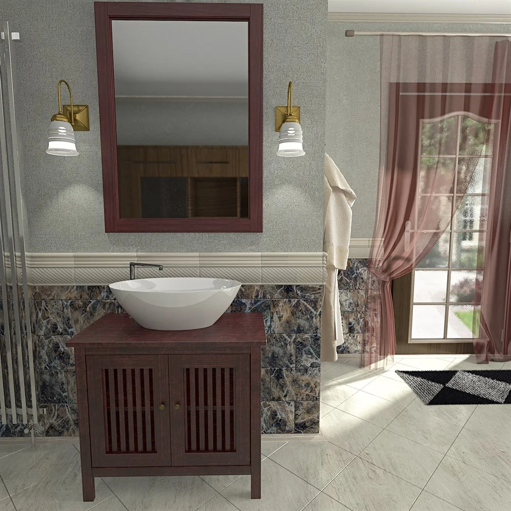Зеркало для ванной комнаты Orange Capri: зеркальное полотно - 4 мм, подложка и обрамление зеркала из массива березы, покрытие лак, цвет орех матовый. Тумба для комплекта: OCN-75TU+RA