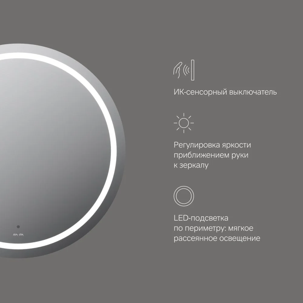 Яркая контурная LED-подсветка обеспечивает отличное рассеянное освещение и отсутствие теней. Срок службы светодиодов составляет более 30 000 часов. Сенсорный выключатель Touchless – никаких отпечатков на зеркальном полотне! Свет включается легким взмахом руки функция диммирования позволяет регулировать яркость жестом.