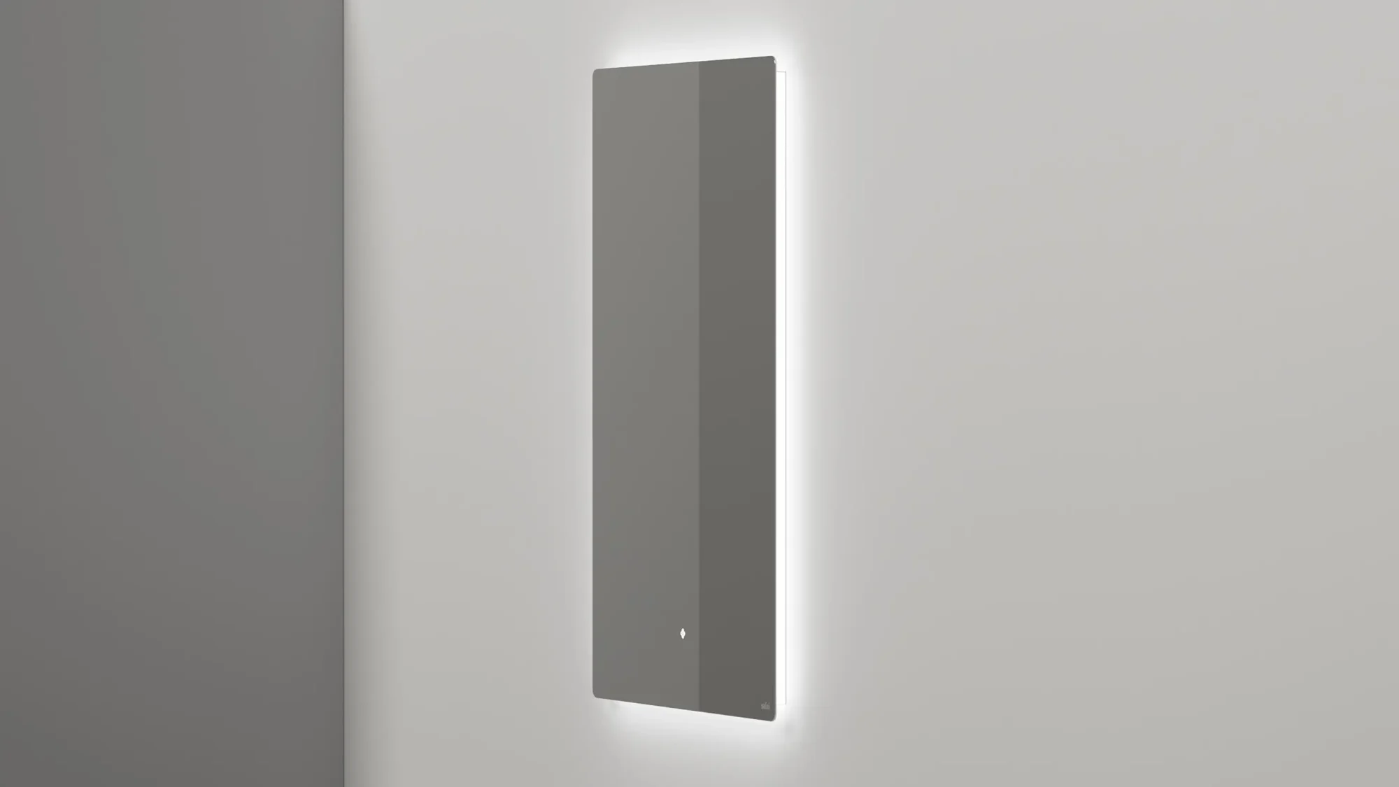 Идеальные линии, шлифовка «Еврокромка», фоновая LED-подсветка по всему периметру, управляемая одним касанием, эффект парящего зеркала благодаря тонкому корпусу в 20 мм, смещённому от края на 15 мм – коллекция OMBRA создана для тех, кто выбирает продуманный, стильный и комфортный интерьер ванной комнаты.