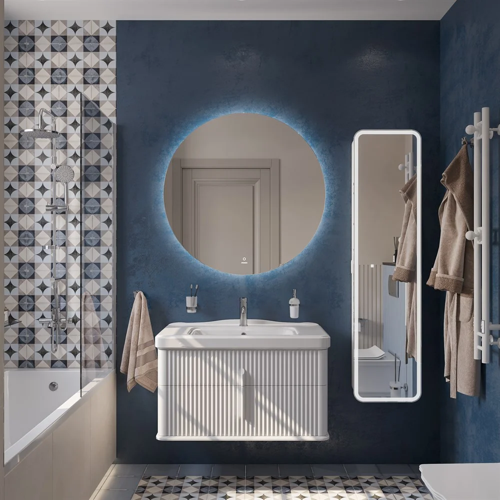 Зеркало STWORKI Мальмё 100 с ореольной подсветкой, сенсор на зеркале, круглое, настенное 465745