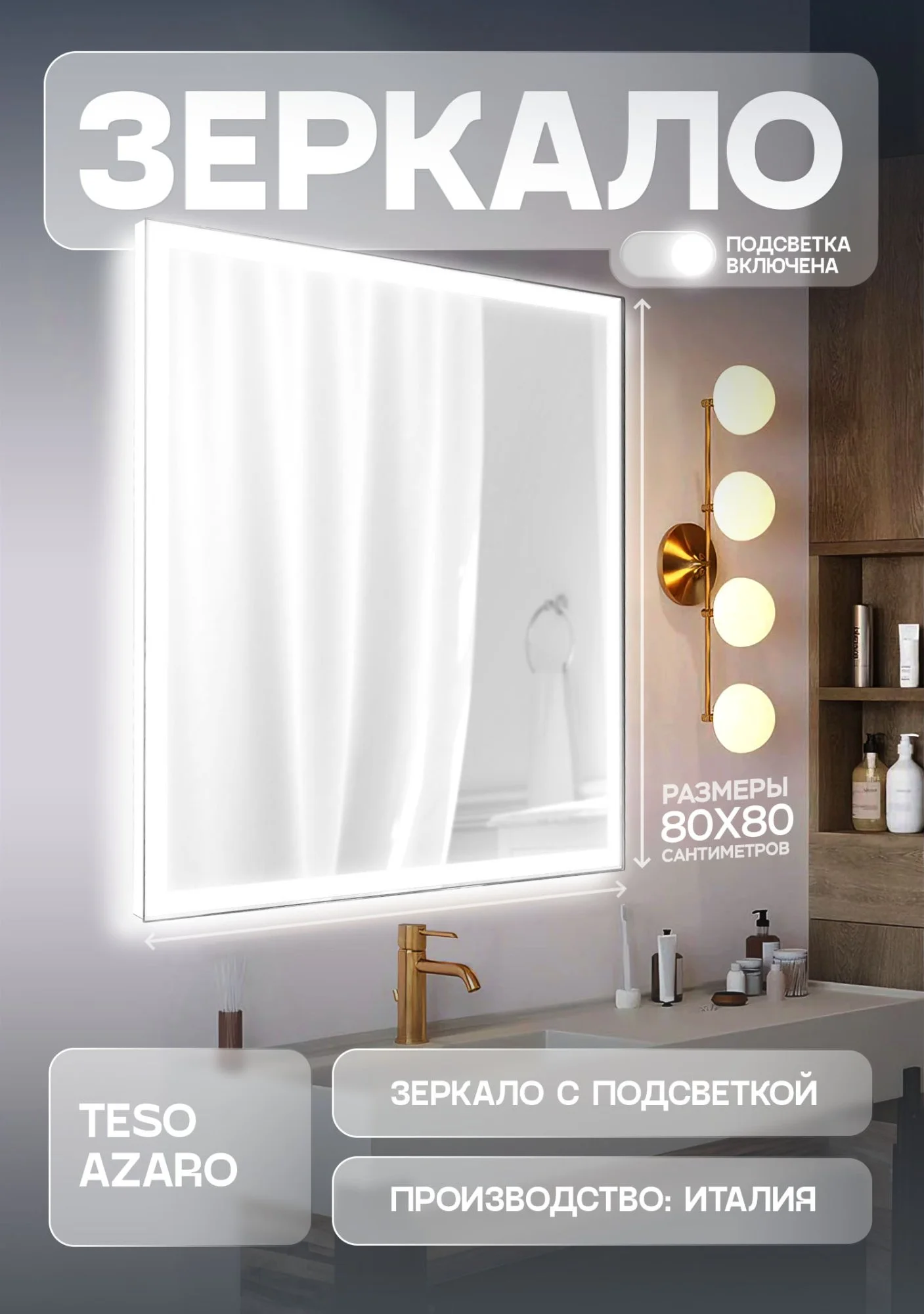 Зеркало Teso azaro Aqua E1288 c LED-подсветкой 800x800