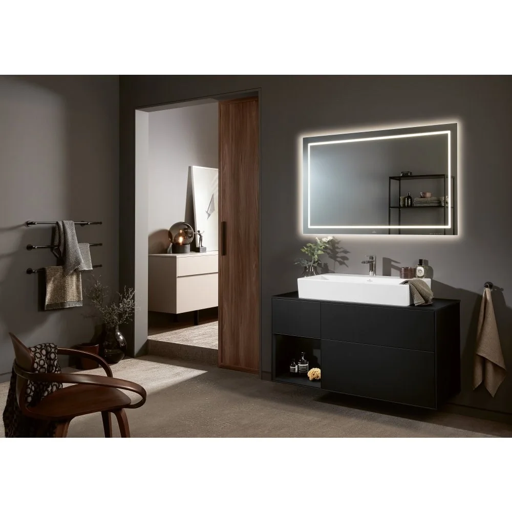 Благодаря инновационной системе подсветки Villeroy & Boch в ванной создается особая атмосфера. За счет прямых и непрямых источников света подсветка с плавно регулируемой яркостью превращается в стильный элемент дизайна зеркал для ванной Finion.
