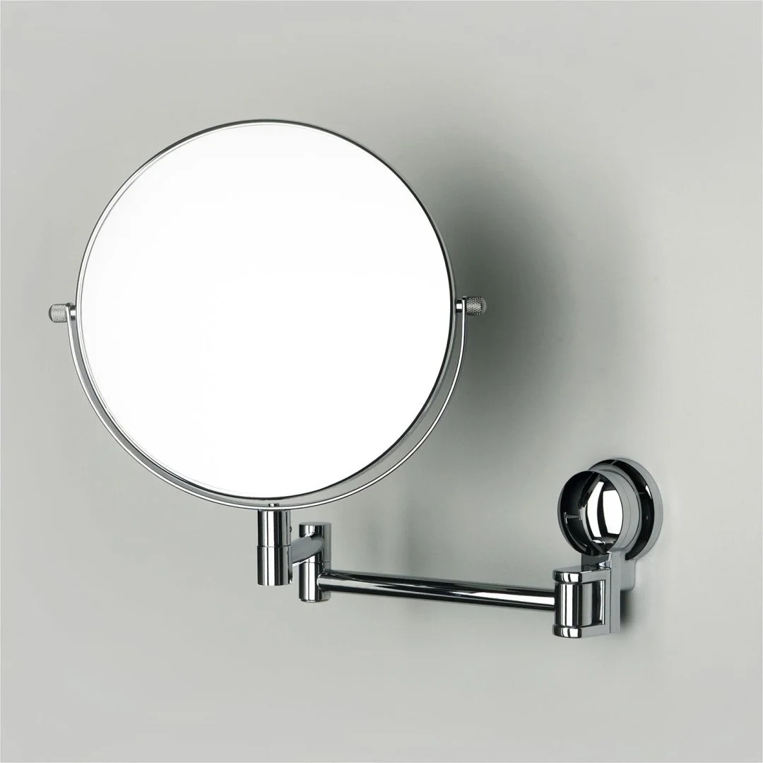 Зеркало является необходимым предметом в ванной комнате. Мы предлагаем двухстороннее зеркало (с одной стороны стандартное зеркало с другой стороны зеркало с 3-х кратным увеличением). Благодаря конструкции зеркала, вы можете его разместить так, как вам будет удобно. Зеркало вращается на 360 градусов по вертикали и горизонтали, что позволяет регулировать угол наклона зеркала и легко развернуть к себе нужной стороной. Также при помощи складной шарнирной ножки зеркало можно приблизить к лицу или убрать к стене.