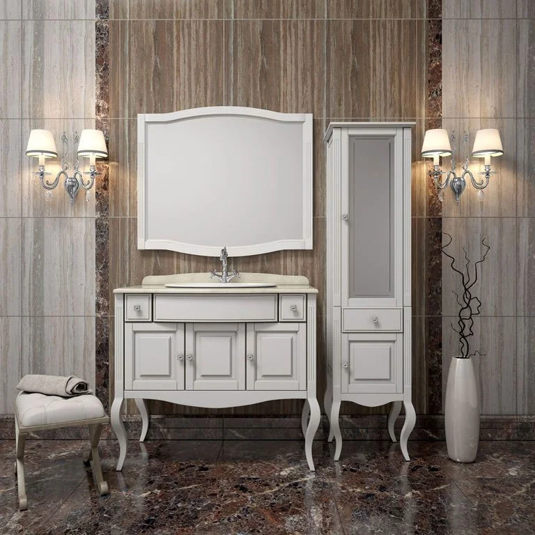 Коллекция Лаура создана нашими дизайнерами в стиле Нео Классика. Фасадные детали изготовлены из массива бука. Особый способ патинирования золотой краской на фасадах придает коллекции Лаура дополнительный шарм и очарование. На тумбу из коллекции Лаура можно установить мраморную столешницу с врезной накладной керамической раковиной (для размера 100 см) или раковину из литого мрамора. Особый шик коллекции добавляют золотые ручки, инкрустированные стразами. Мебель для ванной комнаты из коллекции Лаура представлена в двух размерах 100 см и 120см. Коллекцию Лаура дополняет изящный пенал с оригинальными гнутыми ножками.